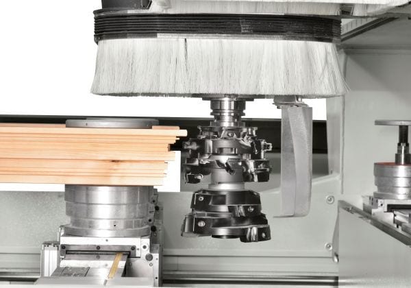 Heavy duty profiling performed at high speed for a perfect finish quality, using the rear routing unit equipped with the 21 kW electrospindle.