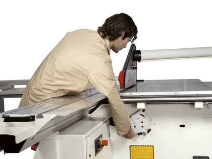 Sliding carriage: maximum cut quality guaranteed over time. The carriage will never require adjustment due to its structure with arch-ground steel slideways (developped by Scm).
