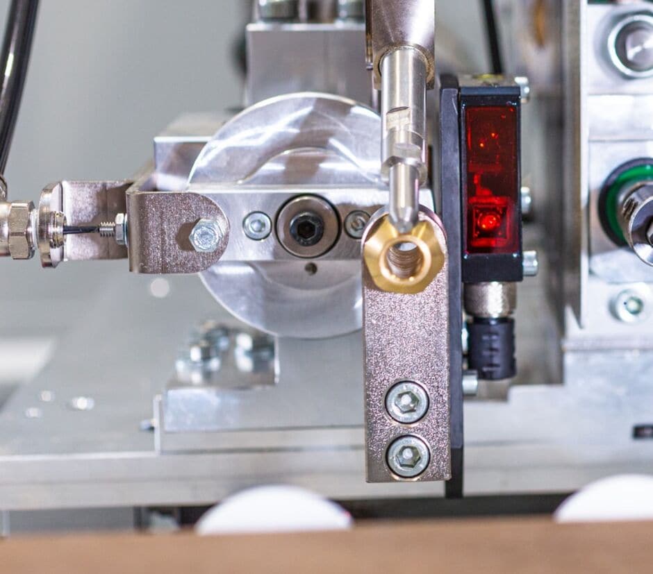 The dowel insertion revolver verifies a dowel is present via fiber optic sensor while a second dowel is inserted. The OMAL “SURE SHOT” revolver system guarantees a dowel is inserted every time